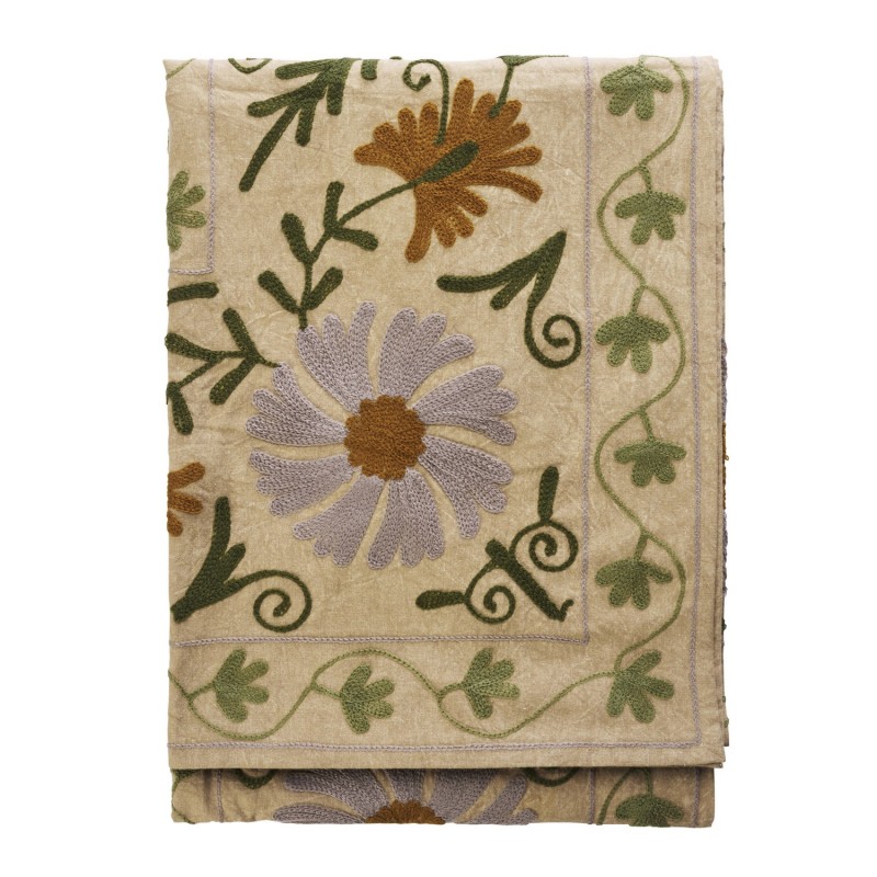 Son velours doux et légèrement patiné offre un tombé noble, tandis que les broderies apportent une touche de caractère et de chaleur. Parfaite en jetée de lit, plaid ou décoration murale.
