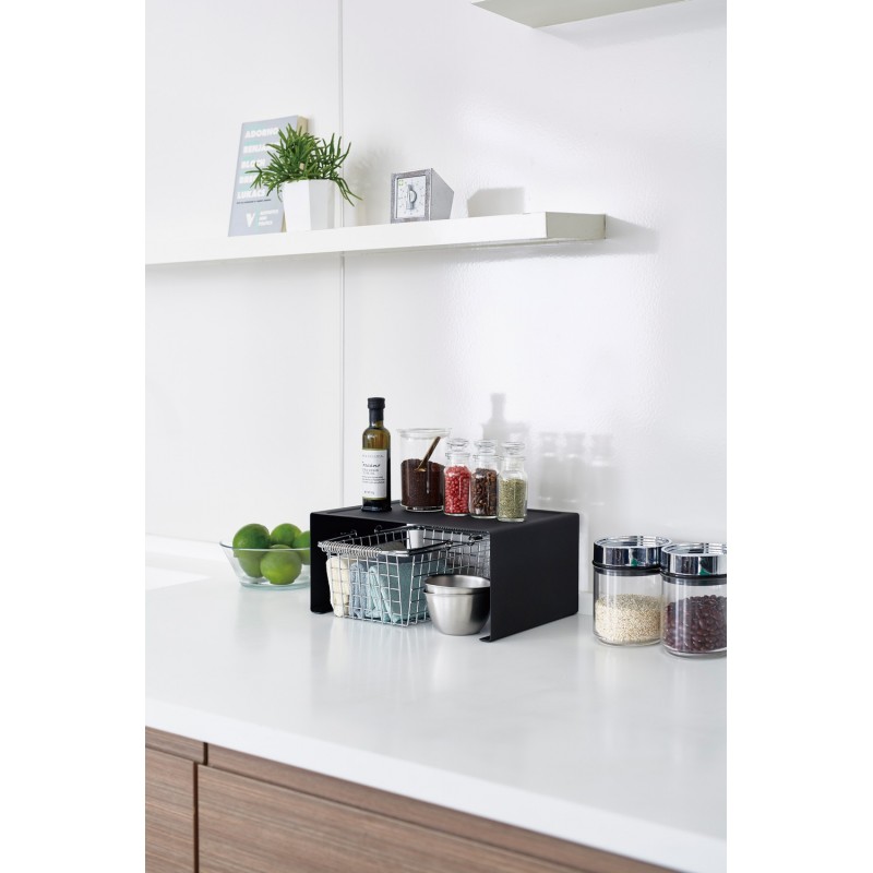 Avec son design épuré et discret, l’étagère empilable Yamazaki Tower optimise l’espace de votre cuisine en ajoutant un niveau de rangement supplémentaire.