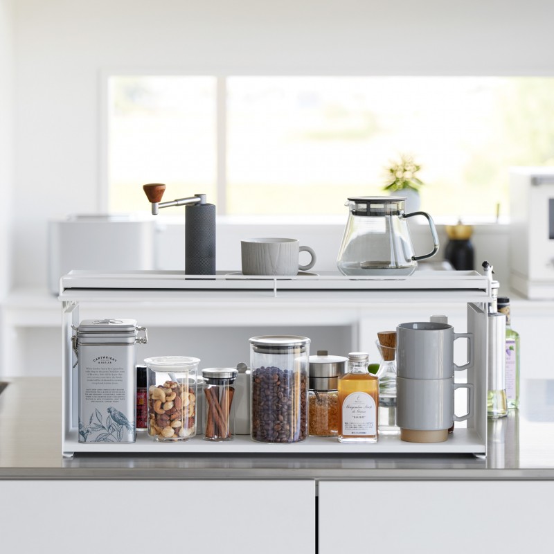 Cette étagère est idéale pour optimiser l'espace sur le comptoir et organiser les objets essentiels. Le dos ouvert et le couvercle coulissant, permettent accès des deux côtés - le choix excellent pour les îlots de cuisine.