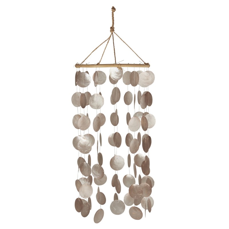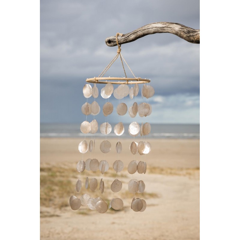 Ajoutez une touche bohème et élégante à votre espace avec ce carillon à vent en bois, rotin et coquillages nacrés gris clair de IB Laursen.