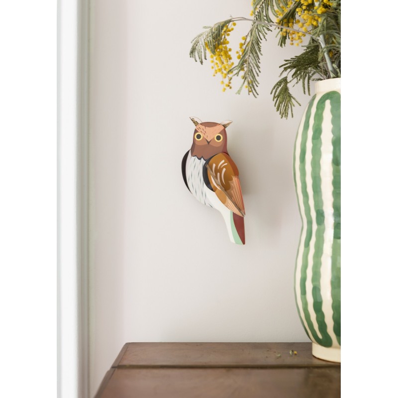 À poser sur une étagère ou à fixer au mur, la Tawny Owl ajoute une touche graphique inspirée de la faune dans un salon, une chambre d’enfant ou un bureau. Elle s’intègre aussi bien dans des décors modernes que bohèmes, apportant douceur, chaleur et originalité.