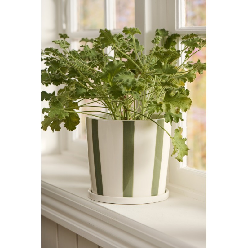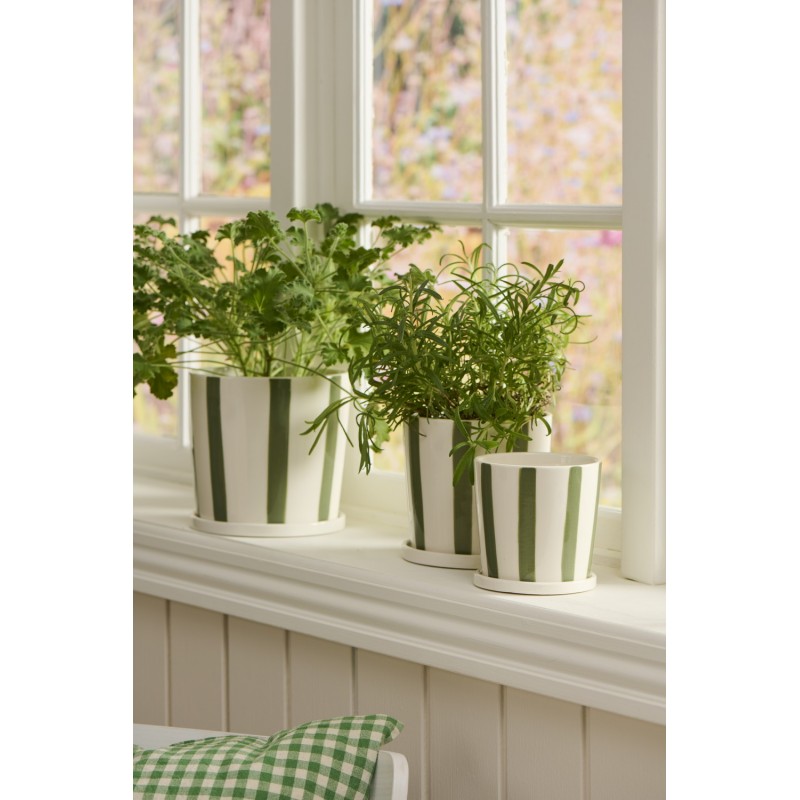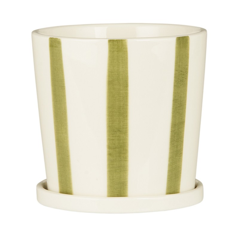 Ajoutez une touche de couleur et d'originalité à votre intérieur avec ce cache-pot en céramique blanc, orné de rayures vertes fraîches et élégantes IB Laursen.