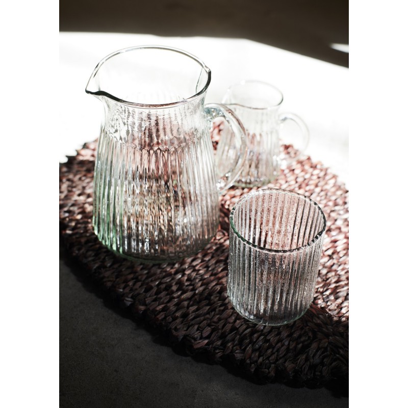 Avec sa surface finement texturée de rainures verticales, ce verre à eau signé Madam Stoltz est une pièce à la fois élégante et minimaliste, idéale pour sublimer toutes vos tables – du brunch décontracté au dîner raffiné.