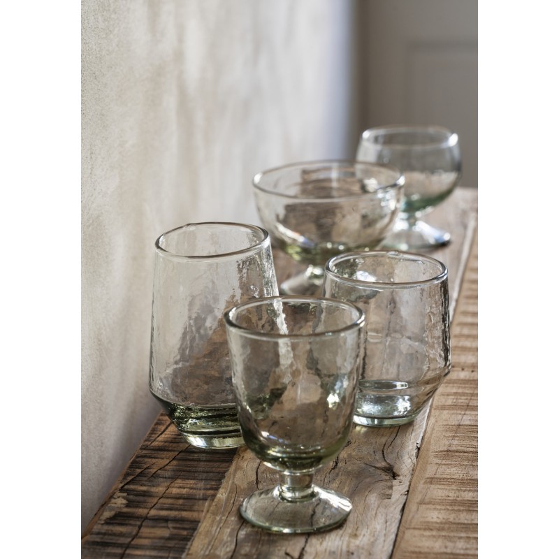 Issu des ateliers de Firozabad, haut lieu de l’art verrier en Inde, ce verre à pied martelé incarne l’équilibre parfait entre savoir-faire traditionnel et design responsable.