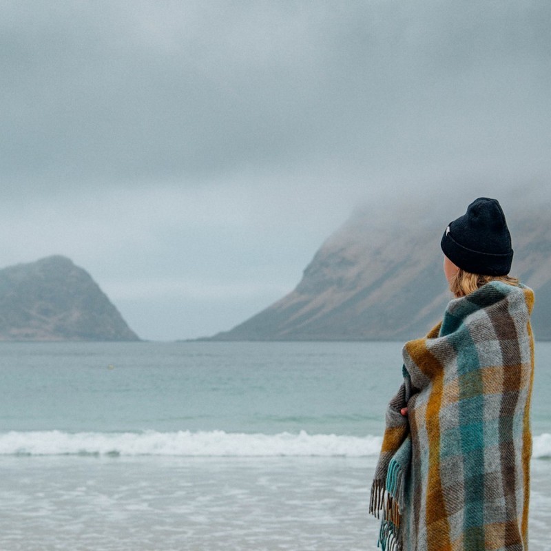 plaid laine agneau chaud a carreaux turquoise klippan gotland multi
