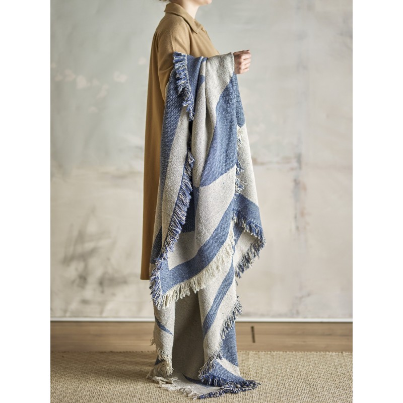 plaid chic motif geometrique bleu coton recycle bloomingville