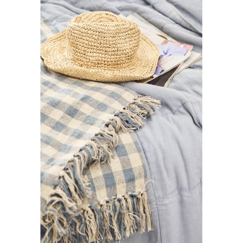 plaid coton vichy carreaux bleu clair ib laursen