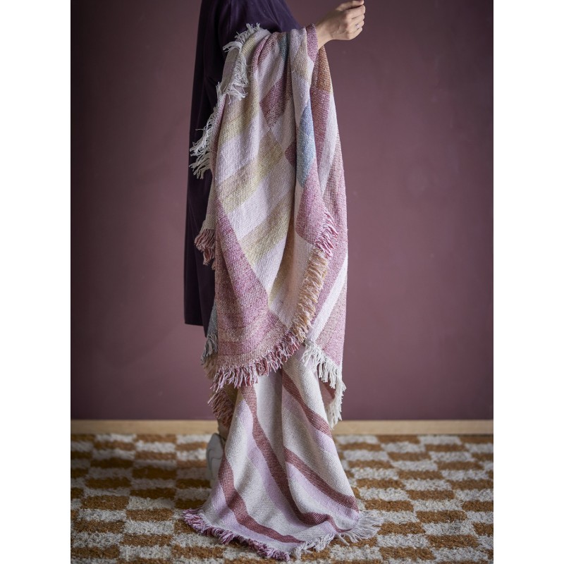 Plaid motif graphique pastel franges coton recycle Bloomingville Lane