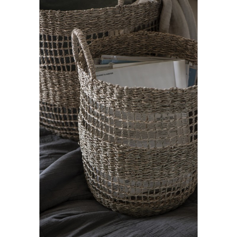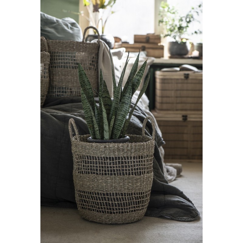 ib laursen set de 3 paniers tresses ajoures jonc de mer naturel