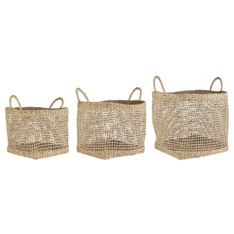 ib laursen paniers carres jonc de mer tressage ajoure a trous set de 3