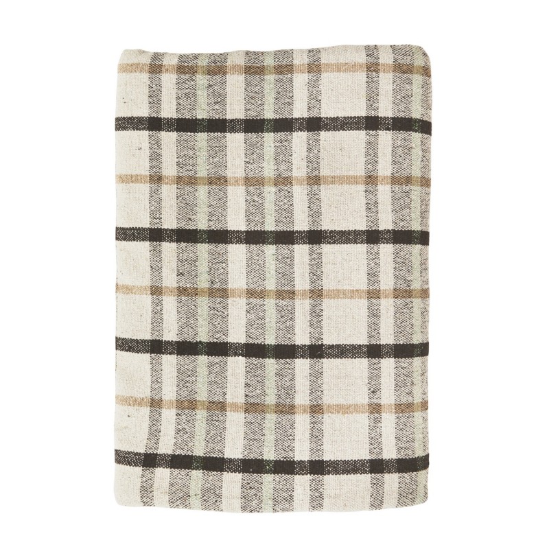 couvre lit tartan ecossais blanc ecru beige marron coton madam stoltz