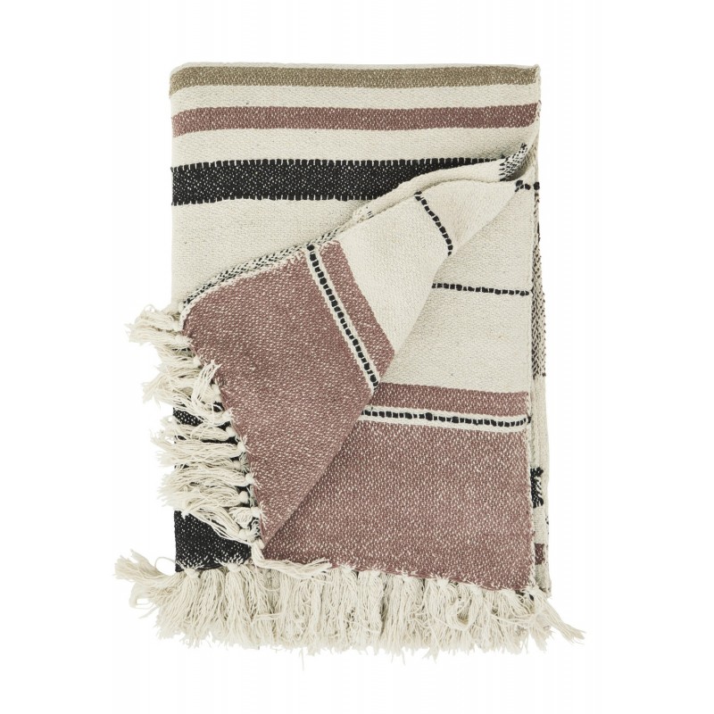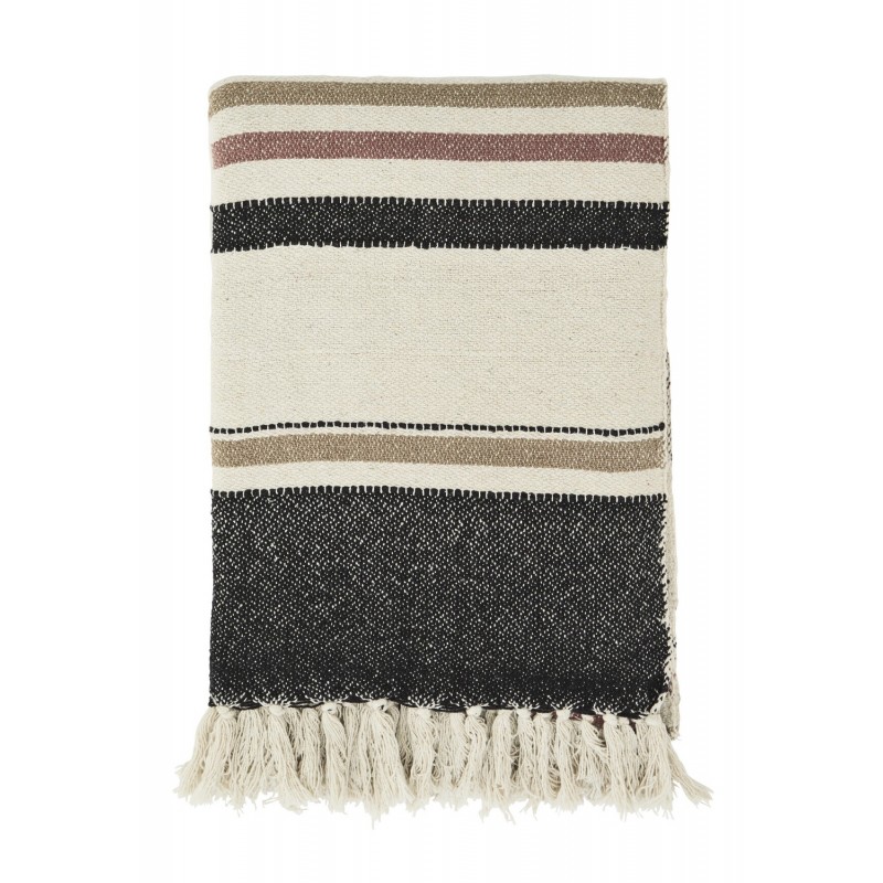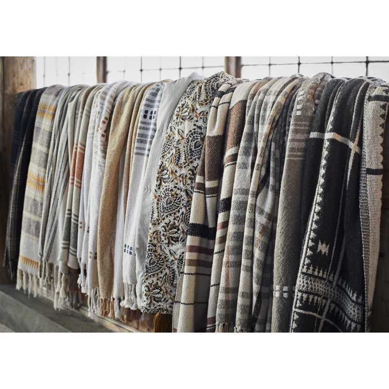 plaid coton recycle beige brun marron franges madam stoltz