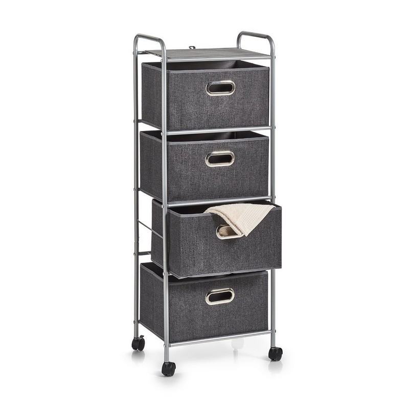 meuble rangement 4 tiroirs tissu gris metal zeller 17159