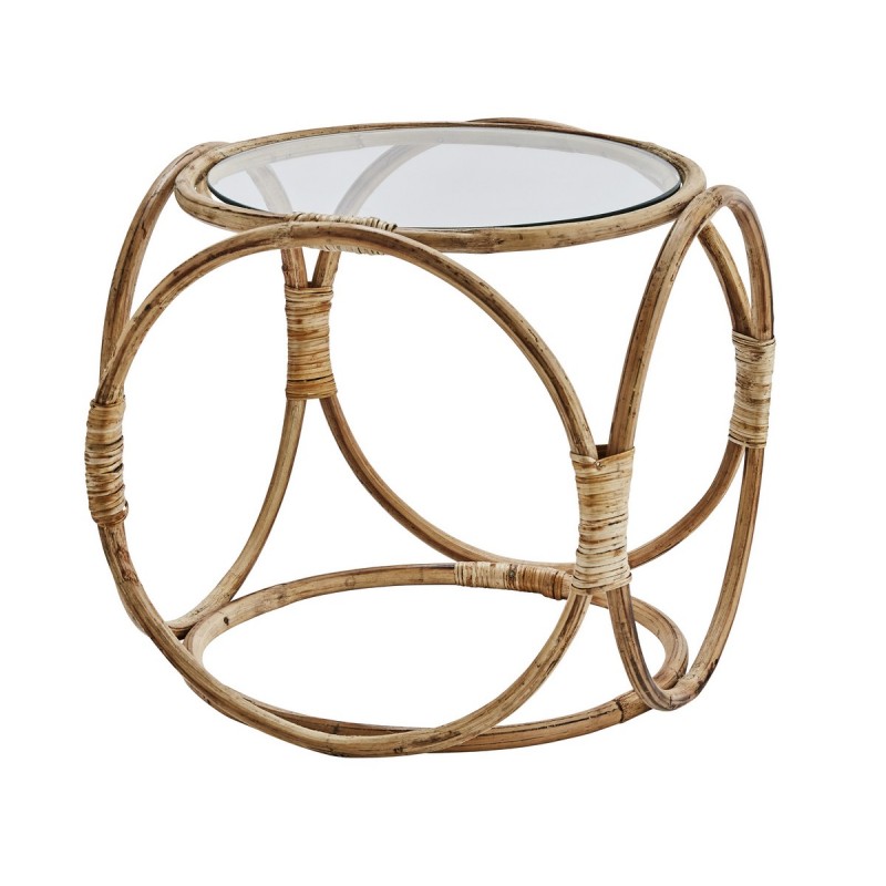 madam stoltz table basse ronde retro bois bambou naturel verre 21729N
