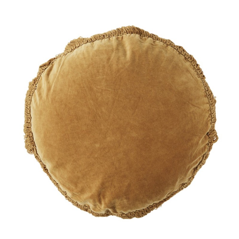 madam stoltz coussin rond velours jaune moutarde 18CUC738HY